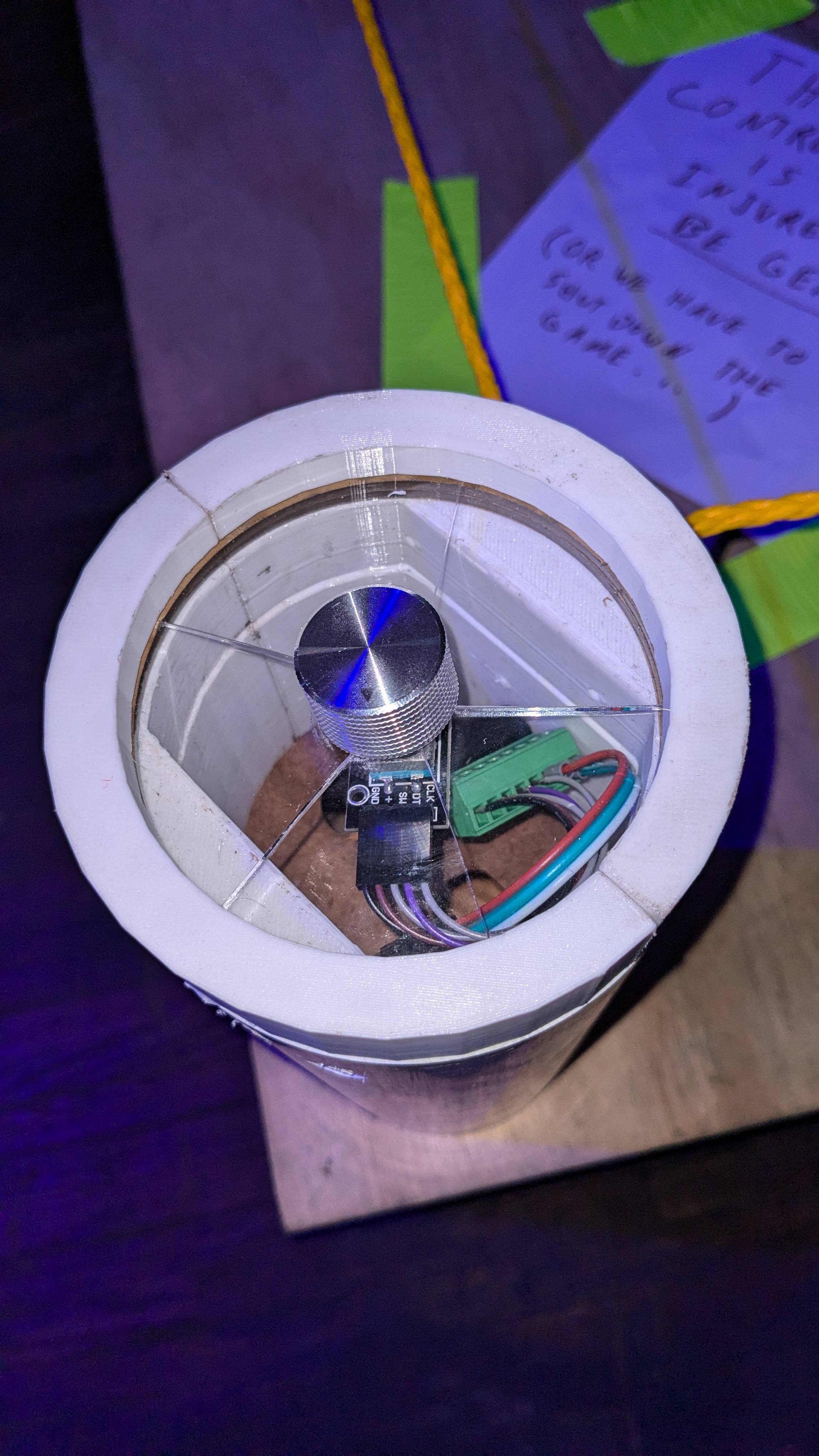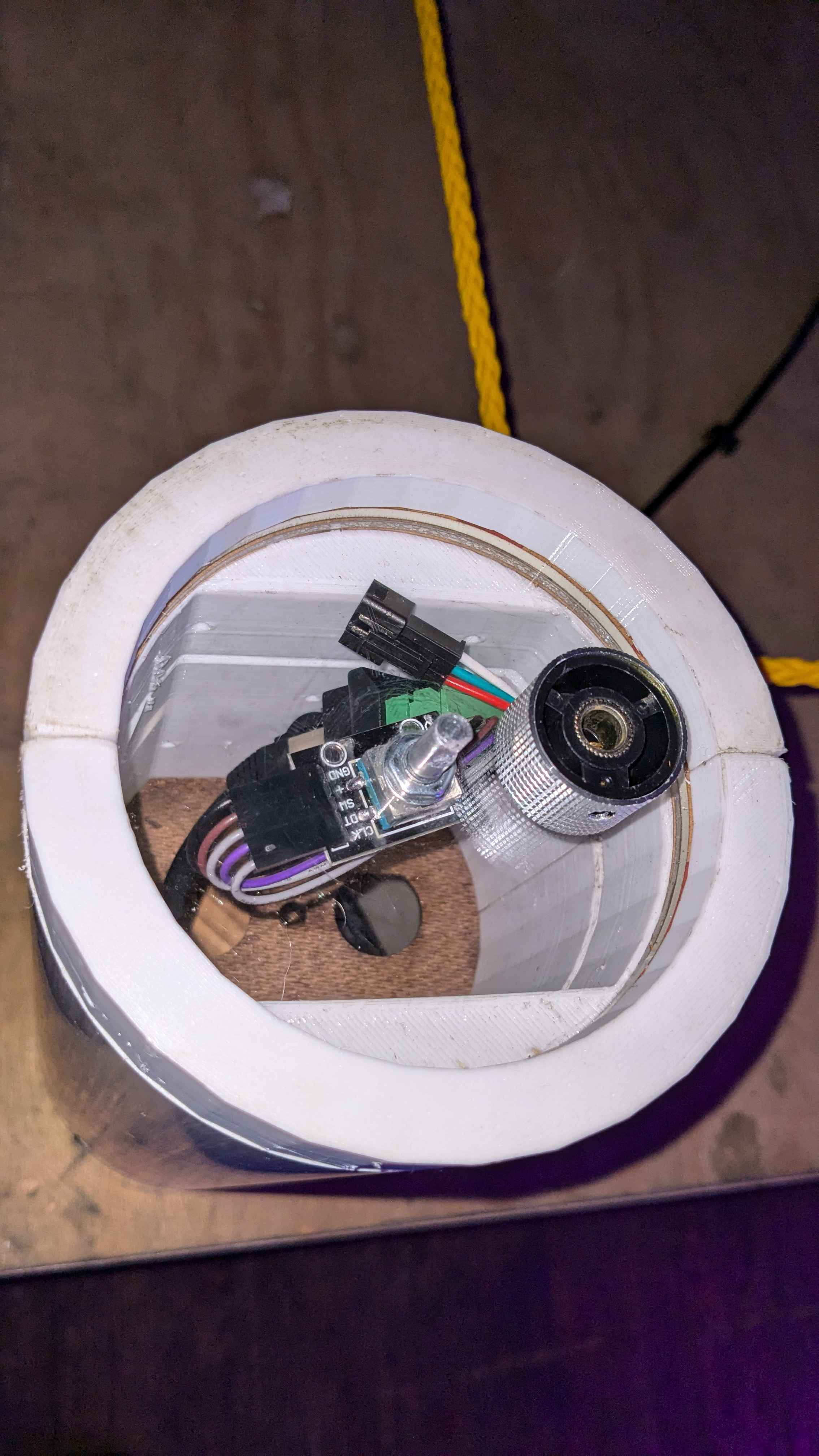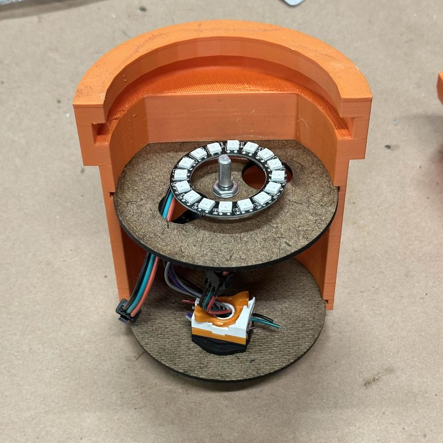 With that milestone cleared, and the display working properly, the race was on to build working controllers before IngenuityFest started on the 26th. The initial design we had in mind contained a section for an addressable LED ring light around the main controller knob, but we ran into both hardware and software limitations and had to cut it from the final design: